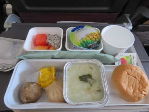 2種類あったようですが、後方座席でしたので1種類のみ、点心とおかゆですね。