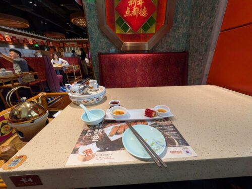 中国は高齢化が進み始めた~といっても、やはり人口が多くて店員さんも多かったです。3つのテーブルで1人くらいはいてたと思います。