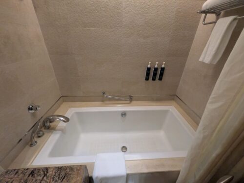 トイレや洗面台は、2か所あるほか、バスタブ1つとシャワーブースもありました。